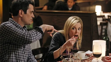 Phil and Claire take Mitchell and Cameron to dinner as a thank you for sending Steven and Stefan their way. And they have a few drinks. And reenact a couple of funny scenes from Austin Powers: The Spy Who Shagged Me. There was some crying (Phil) and some complaining (Mitch, not Claire). But somehow through their drunken haze, they figure out Mitch and Cam's problem with surrogacy. They use an egg from Claire and sperm from Cameron so the baby is half Pritchett, half Tucker. (and no Dunphy, which may explain Phil's crying.) Phil and Claire were definitely regretting it in the morning.