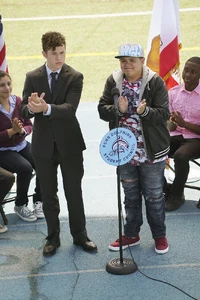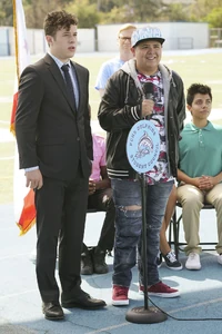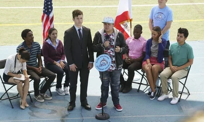The Dunphys and Pritchett's are going head-to-head when Luke decides his best chance at getting into college is running for senior class president against Manny. The outcome of this election is even more important to Jay, Gloria and Claire, who prove to be dubious campaign managers. Now that Haley has started her own promotion business, Phil insists on introducing her to marketing guru Merv Schechter, who hasn’t seen a stress ball he can’t slap a logo on yet. Meanwhile, Cam finds out his star football player is moving away and makes a rash decision that is going to make home life a little cramped for Mitch and Cam.