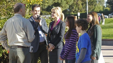 The all important election day has arrived and the whole family rallies for some last minute campaigning - Mitchell and Cam ride around in a 'Vote for Claire' mobile, the Dunphy house is campaign central with everyone manning phones and soliciting votes, and Claire does some last minute interviews -- with a few technical difficulties.