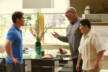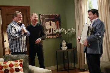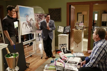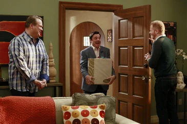 Gloria and Jay have had problems trying to keep a nanny for Joseph. They've gone through five already. Although in fairness to Gloria, not all of them were her fault. Manny might have tried to get friendly with a few of them. (JAY: There's an embarrassing press conference in that kid's future.) Well, Gloria has a potential solution; she finds a manny at the playground. (MANNY: I'm being replaced?!?) Jay finds the whole situation too weird for his taste, particularly since the manny was like Mary Poppins on steroids. Gloria is outvoted 2-to-1, so naturally, the manny stays. Which Jay didn't know happened until he hands Jay a towel in the shower. And cooks breakfast for Manny and him. The flaxseed muffins were a bit much, so he had to be fired. Gloria was furious because she finally found a nanny she liked and she was the one who was around the house all the time and had to deal with him. But the manny played peacemaker...and quite well, in fact. He even showed Gloria when she yells at Jay and Manny, they tend to listen less. Yup, he had a job. Although the exercising as a family was a bit much.