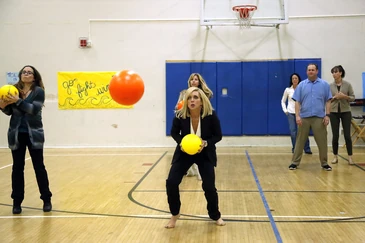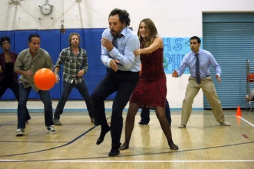 While Jay sneaks into the teacher's lounge to watch his football game on their TV, Gloria and Dr. Duncan make it to Cameron's lecture. Dr. Duncan does a pretty good imitation of The Plastics from Mean Girls trying to submarine Gloria. Cam, losing the crowd with his boring lecture, caves in and tells the parents he really wanted to let them play dodgeball. Dr. Duncan thinks it's a good idea. As does Gloria. Cameron tries to talk them out of it, but it's the only way to keep the parents around. It actually works until Gloria and Dr. Duncan are the last two standing. Dr. Duncan whips one at Gloria's head before Cam's whistle and tries to "apologize," which Gloria takes as reason to attack her. Dr. Duncan fought back, despite Cameron being in the middle. Literally.